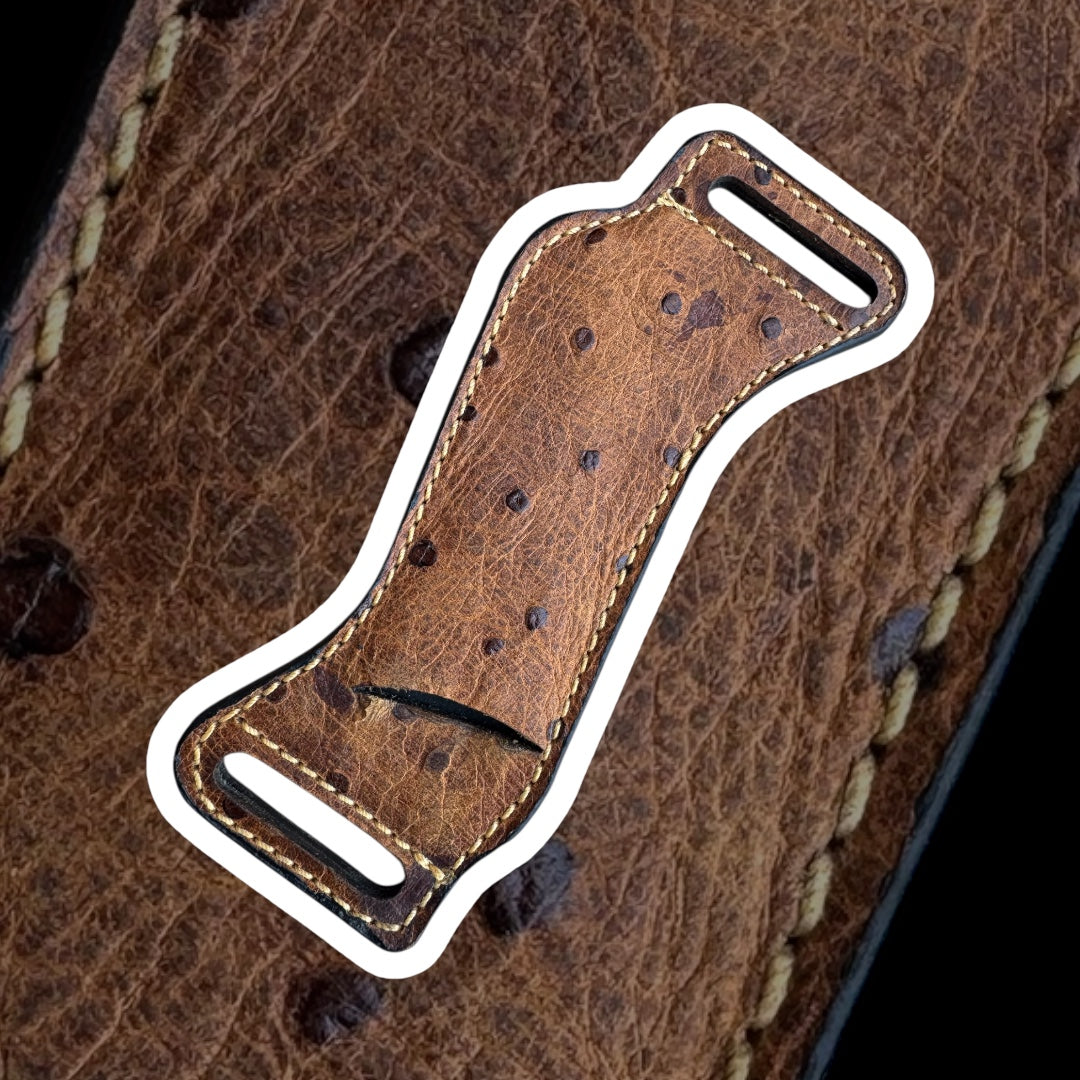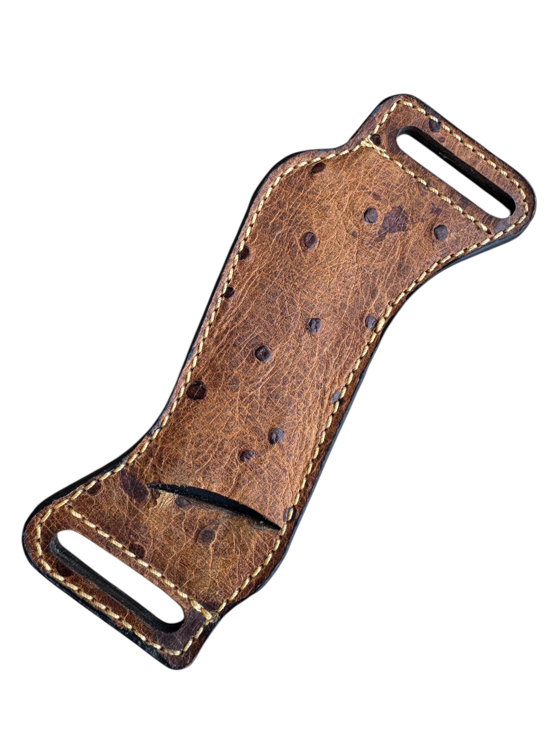 Ostrich skins are a luxurious and distinctive choice for crafting leather sheaths, prized for their unique texture and exceptional durability. The plush, soft feel of ostrich leather, characterized by its characteristic quill pattern, adds an element of elegance and sophistication to knife sheaths.